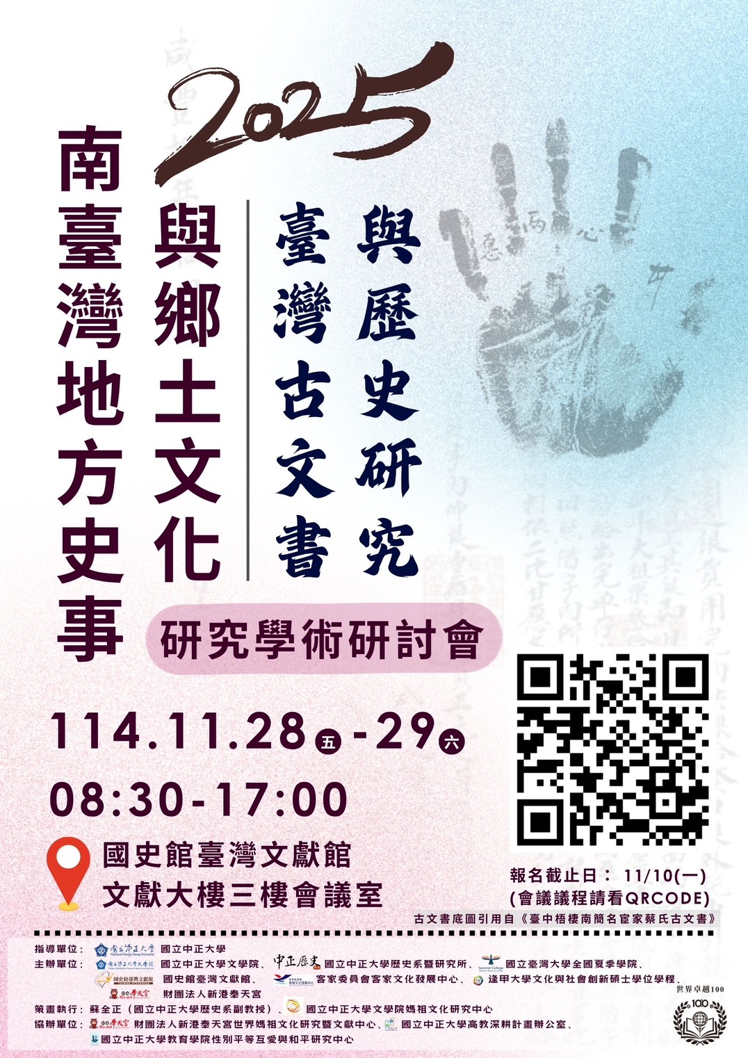 2025南臺灣地方史事與鄉土文化研究學術研討會-臺灣古文書與歷史研究