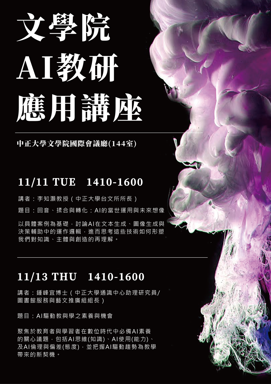 講者:鍾峰宜博士(中正大學通識中心助理研究員/圖書館服務與藝