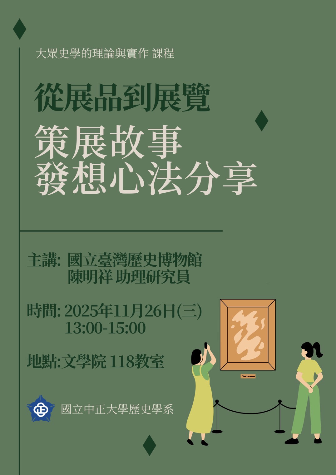 【學術演講】114/11/26國立臺灣歷史博物館陳明祥助理研究員「從展品到展覽—策展故事發想心法分享」專題演講