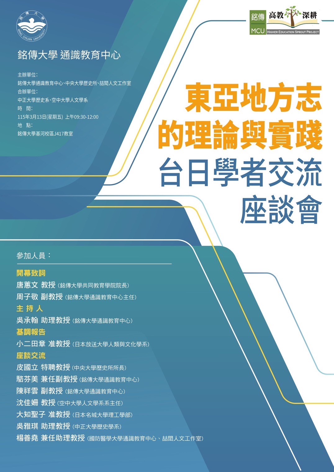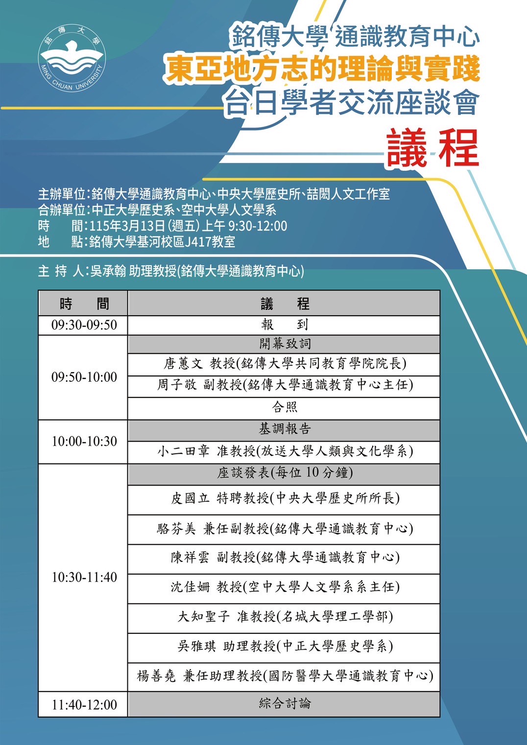 【本系合辦】115/3/13東亞地方志的理論與實踐-台日學者交流座談會